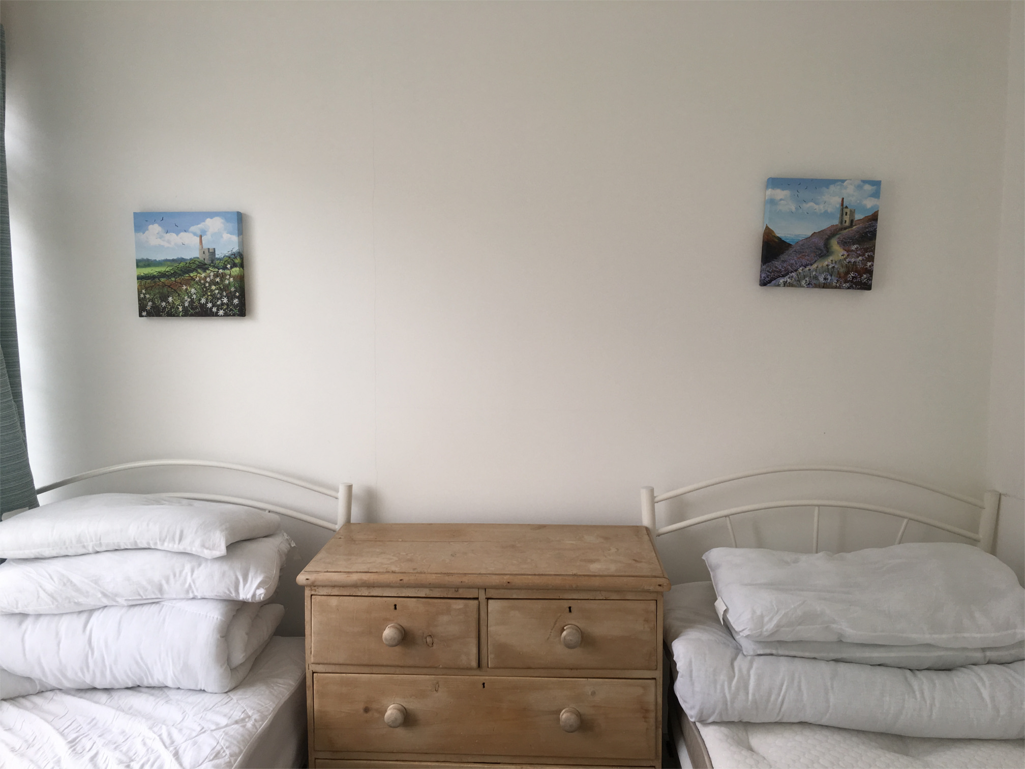 White Cove is a lovely two bedroomed dog friendly, cottage that sleeps four in one double room (with an ensuite toilet, sink and shower room) and one twin room on the ground floor. All linen and towels are provided. All the duvets and pillows are hypoallergenic but feather pillows are available on request. Both bedrooms have space for putting clothes and bags away. There is a travel cot also available on request.