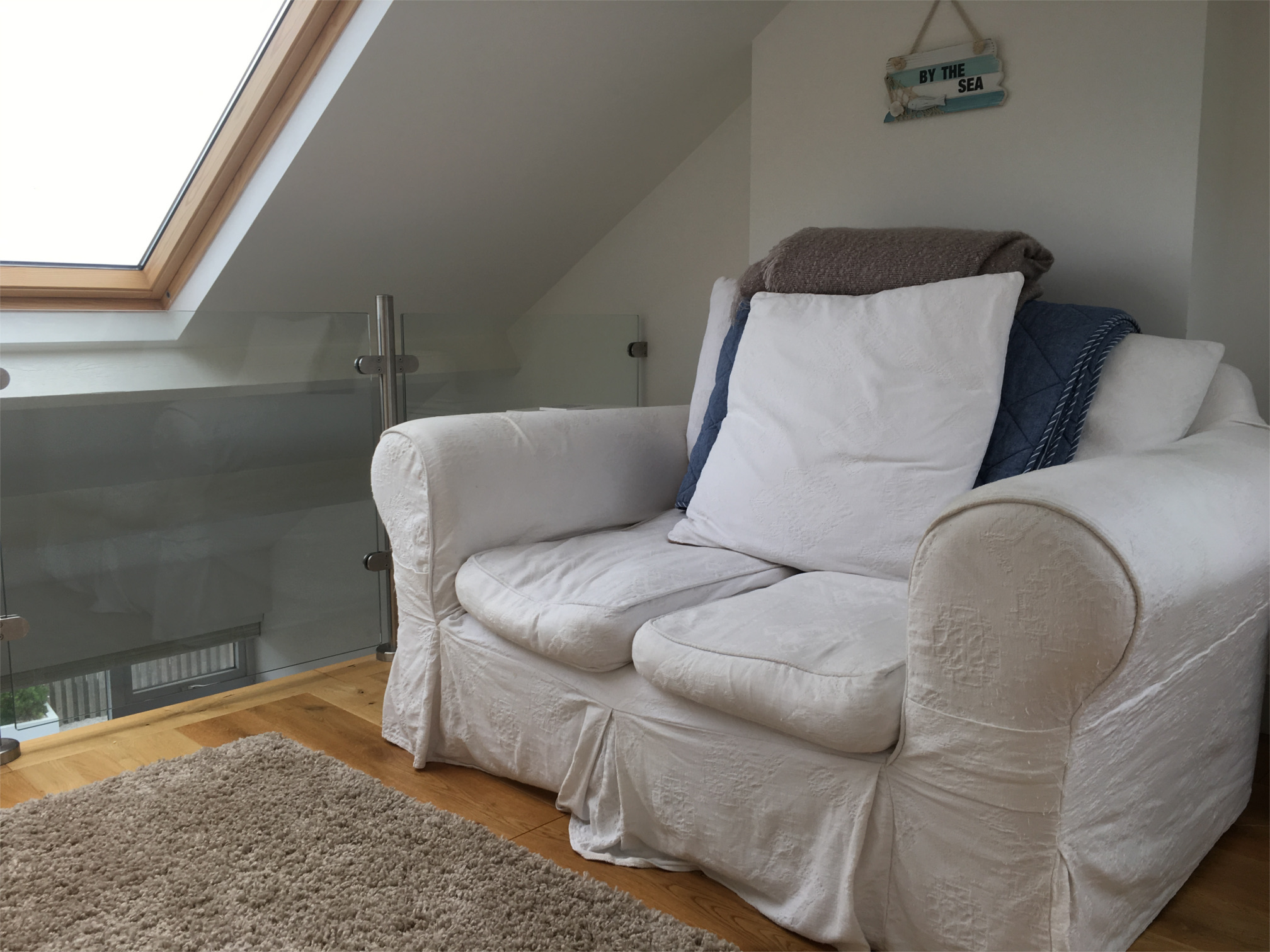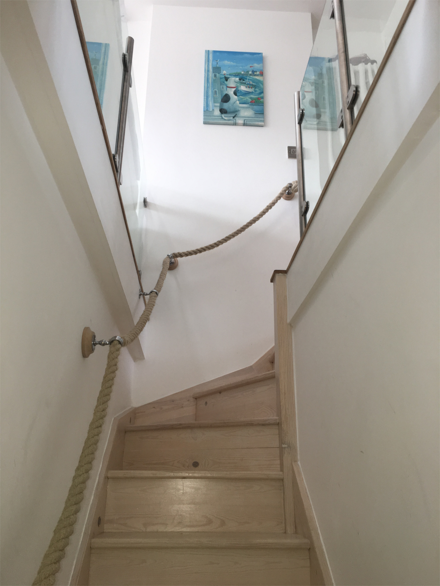 From the living room there is a set of steep, paddle steps which lead to the mezzanine floor/snug where you can continue to enjoy the views. *Please take care on these steps they are very steep and quite awkward to descend. Please keep an eye on young children to avoid any accidents.